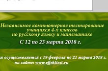 С 12 по 23 марта учащиеся 4-х классов могут пройти независимое тестирование по русскому языку и математике.