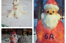 В школе проходит конкурс снежных фигур. Ученики создают новогодние шедевры из снега и красок. А чтобы увидеть их в полной красе, приходите на школьный двор, они встречают вас недалеко от входа.