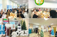 Встречали гостей Дед Мороз и Снегурочка, создав праздничное настроение. Для детей было организовано горячее питание, вручены новогодние подарки, а также подготовлена яркая фотозона, где каждый смог сделать памятные снимки.