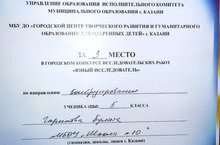 Поздавляем ученика 5 "Б" класса Гарипова Булата за участие и победу (3 место) в городском конкурсе исследовательских работ "Юный исследователь" . Желаем дальнейших успехов.