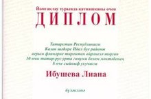 8А сыйныфы укучысы Ибушева Лиана татар теле һәм әдәбиятыннан үткәрелгән III Халыкара олимпиаданың йомгаклау турына үтте. Уңышлы чыгыш ясап, Татарстан Республикасы мәгариф һәм фән министрлыгы Дипломы белән бүләкләнде (укытучысы – Шәфигуллина Р.Ф.). Котлыйбыз!