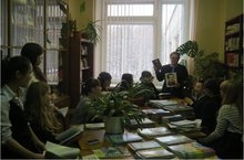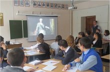 В помещении библиотеки, где были празднично оформленные стенды, подборка книг по творчеству М.Ю.Лермонтова, афоризмы о русском языке, была проведена предварительная вступительная беседа с учащимися о писателе, выразительное чтение стихов.
