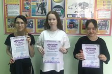 Минвәлиева Ләйләне, Әхмәтшина Ралинаны, Әхтәмова Альмираны " Куркынычсызлык юлы" республика бәйгесенең lll дәрәҗә дипломнары белән котлыйбыз. Укытучылар: Ф. И. Хадиева, Л.Г.Бердникова. Киләчәктә уңышлар телибез! -