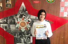 Поздравляем Османову Сабину с дипломом II степени Республиканской научно-практической конференции школьников «Память сердца», посвящённой памяти Героя Советского Союза С.А.Ахтямова. Научный руководитель - Л.Г.Бердникова. Желаем дальнейших успехов!