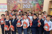Кыш Бабай һәм Кар Кызы башлангыч сыйныф укучыларына баллы бүләкләр тапшырдылар.