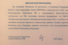 Спешим поделиться приятной новостью. Мы получили официальное письмо-подтверждение о том, что наша Школа является участником сети Ассоциированных школ ЮНЕСКО Российской Федерации.