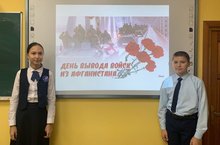 Сегодня, 15 февраля, в нашей гимназии прошли мероприятия ко Дню памяти о россиянах, исполнявших служебный долг за пределами Отечества. День памяти был приурочен к дате вывода советских войск из Афганистана. В этот день в 1989 году вернулись на Родину последние подразделения. Учащиеся 8-9 классов посмотрели фильм и выступления о героях, исполнявших свой долг, проявивших самоотверженность и преданность Родине (отв. учитель истории Хайрутдинова Г.Н.)