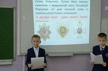 Мы почитаем, чествуем храбрейших из людей от дней Екатерины и до наших дней... Уроки мужества, посвященные памятной дате России, прошли сегодня во всех классах. Мы не только отдаем дань памяти героическим предкам, но и чествуем ныне живущих Героев Советского Союза, Героев Российской Федерации, кавалеров ордена Святого Георгия и ордена Славы. Надеемся, что памятная дата России будет способствовать "формированию в обществе идеалов самоотверженного и бескорыстного служения Отечеству".