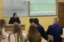 В рамках заключенного договора о сотрудничестве с Казанским институтом юстиции в нашей гимназии проходит цикл лекций от Юсупова Айдара Аскаровича, ведущего преподавателя ВУЗа, кандидата юридических наук, доцента, заведующего кафедрой гражданского и арбитражного процесса. Так, сегодня учащиеся социально-гуманитарного 10б класса познакомились подробно с важной темой "Происхождение государства и права" (отв.учитель Муллабаева А.А.)