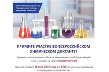 II Всероссийский химический диктант состоится в 18 мая 2019 года в 13:00. Регистрация площадок открыта, регистрация участников открыта. ДАЛЕЕ:
