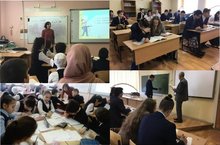 День открытых дверей предметов естественно-математического цикла (рук.методического объединения Самигуллина Н.А.) прошел сегодня в гимназии. Со своей методикой работы гостей познакомили учитель математики Заббарова А.А. (урок в 5б «Десятичные дроби») и учитель математики Байбеков Ф.З. (урок в 11б «Решение геометрических и экономических задач, предлагаемых на ЕГЭ»).