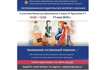 17 ноября 2017 года стартовал новый проект – Республиканское родительское интернет-собрание. Это совместная инициатива Министерства образования и науки Республики Татарстан и Общественного совета при Министерстве образования и науки Республики Татарстан. Очередная тема: "Внимание! Особенный ребенок…" (Об особенностях воспитания и обучения детей с ограниченными возможностями здоровья). Собрание состоится 17 мая. ДАЛЕЕ: