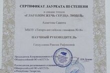 Рәмзия Рафиковнаны һәм аның укучысы - Ахметова Саминаны "От Пушкина до наших дней" I Бөтенрәсәй фестиваленең III дәрәҗәле лауреат дипломы белән котлыйбыз! Молодцы!