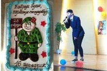 Красочный букет из оригинальных номеров художественной самодеятельности подготовили накануне праздника для наших мужчин администрация, учителя и учащиеся гимназии (руководитель Халимова Г.М.). Со сцены звучали теплые поздравления в танцах, в песнях и в номерах оригинального жанра! А завершился концерт вручением огромного эксклюзивного торта, приготовленного по оригинальному рецепту специально для наших любимых защитников! Для просмотра видеопоздравления КЛИКНИТЕ ДАЛЕЕ: