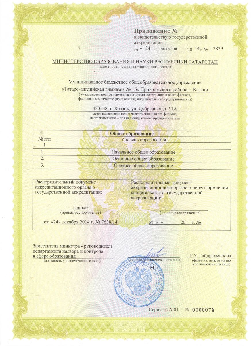Муниципальное бюджетное общеобразовательное учреждение «Татаро-английская гимназия №16» Приволжского района г. Казани