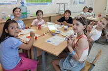 Каждое утро в пришкольном лагере начинается с веселой зарядки!