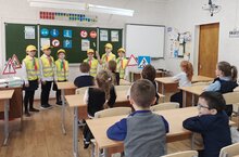 Отряд ЮИД "Светофор" (руководитель Ахметова Л.Ф.) выступил перед учащимися 1-4 классов с профилактикой ПДД "Внимание, дорога!