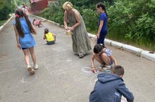 Сегодня в пришкольном лагере состоялся конкурс рисунков на асфальте.