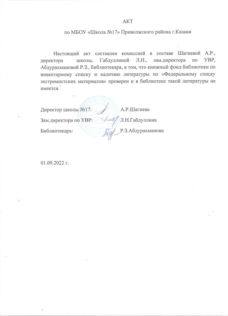 Акт на отсутствие экстремистской литературы