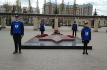 16 мая ученикам 8а класса (руководители Франк Н.Н. и Голубева С.Г.) гимназии выпала честь стоять в почетном карауле у Вечного огня в парке Победы. Ребята отнеслись очень серьезно и ответственно к мероприятию, достойно простояв в карауле и отдав тем самым дань всем погибшим во время Великой Отечественной войны 1941-1945 гг. и в локальных войнах в Афганистане и Чечне.