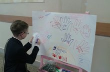 В этот день все делились друг с другом улыбками, приятными комплиментами, угощали сладостями. Активисты детской организации гимназии провели акцию "Поделись своею добротой". Каждый из учащихся, учителей или родителей мог написать свое пожелание, стихотворение, слова из любимой песи или просто приятные слова на экране пожеланий.