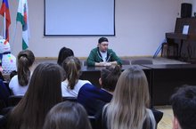 Ученический совет гимназии продолжает реализацию своего проекта "Зарядка со звездой". Сегодня комплекс упражнений для учащихся продемонстрировал Марат Давлятшин, ведущий новостей телеканала "Эфир", выпускник гимназии 40 1996 года. Креативный, находчивый, спортивный, коммуникабельный и харизматичный гость не отказался и от пресс-конференции со школьными СМИ. В беседе учащиеся узнали о нелёгких буднях телеведущего, его планах на будущее и интересном хобби. Вопросы и ответы были очень интересными, осталось много незатронутых, но интересных тем, поэтому телеведущий обещал посетить родную школу снова!
