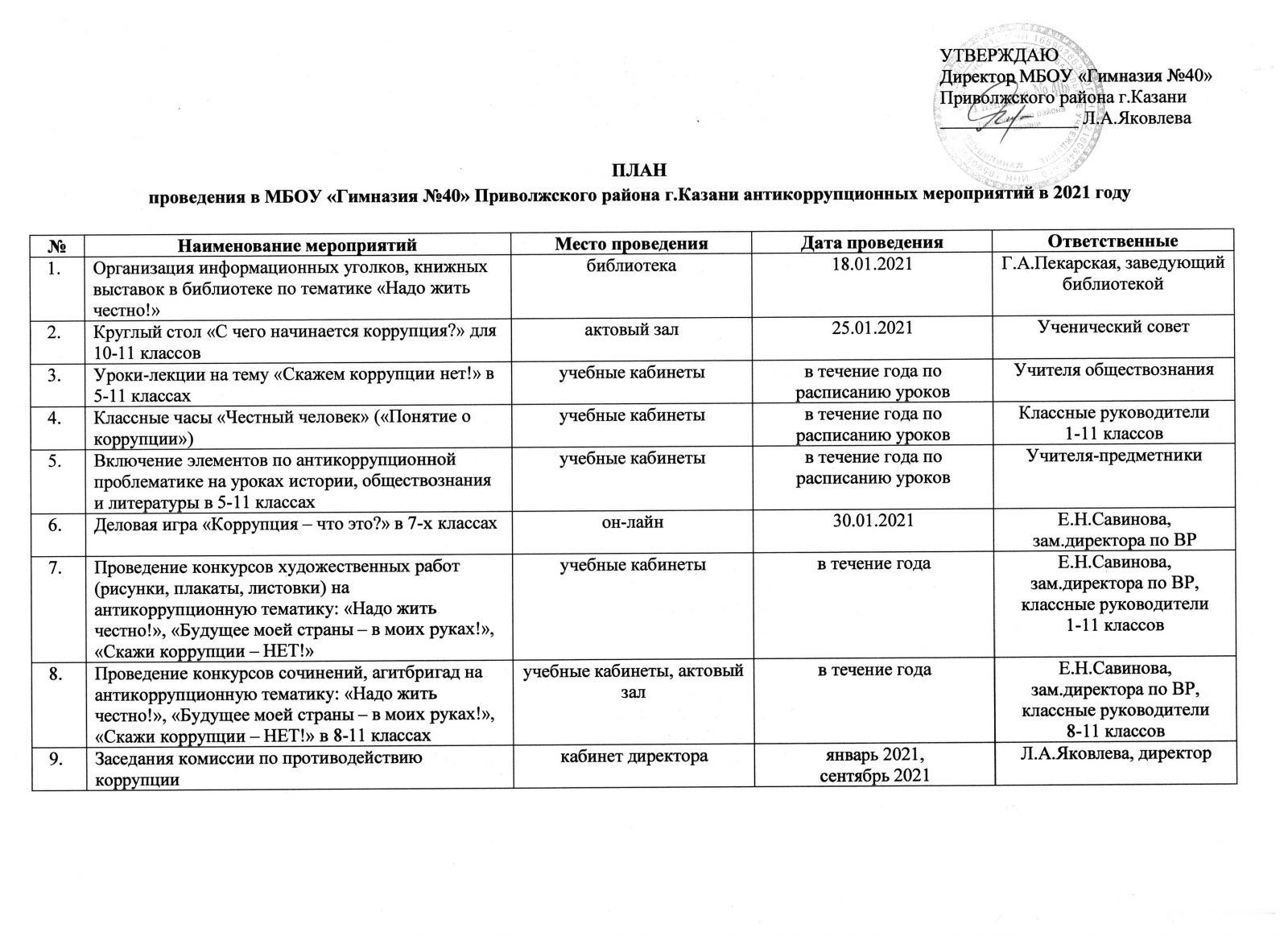 План антикоррупционных мероприятий на 2021 год