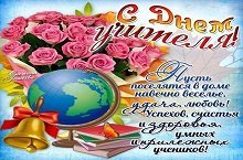 Уважаемые коллеги, дорогие наши учителя! Вы несете в наш мир свет в виде разнообразных: наук, учений и знаний. Вы посвятили свою жизнь тому, что закладываете в головы юного поколения не только азы образования, но и принципы, ценности и приоритеты, которые должны быть в сердцах добропорядочных граждан. Поздравляем вас с праздником — с днём учителя! Желаем вам повседневного наслаждения вашей занятостью, умных и послушных вам учеников, лёгкого учебного года. Желаем вам света, который согреет ваши открытые души. Желаем вам благополучия и успеха, который непременно должен присутствовать в жизни таких замечательных людей. Желаем вам здоровья и личного счастья, благополучия в доме и просто наилучших дней в вашей жизни. Администрация