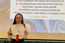Поздравляем Хусаинову Аделину, ученицу 7В класса, занявшую III место в Межрегиональной (с международным участием) научно – практической конференции школьников «Мои первые научные открытия». Спасибо Аделине и её научному руководителю Ахмеровой Гульсине Раучатовне задобросовестный и творческий подход в работе над проектом. Желаем не останавливаться на достигнутом, всегда двигаться только вперед!