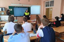 Сегодня сотрудник ГИБДД УМВД России по г. Казани Потапов И.С.провел беседу с учащимися 7-8-ых классов на тему "Правила безопасного поведения на дороге". Ребята внимательно слушали и задавали вопросы.