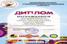 Поздравляем творческий коллектив нашей школы (руководитель – Гилязутдинов Ильяс Ниязович) за первое место в номинации «Школьные новости» на VI Всероссийском фестивале телевизионного творчества школьников «ТЕЛЕКЛАСС». Желаем ребятам дальнейших успехов и побед!