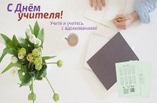 Уважаемые коллеги! От всей души поздравляем вас с Днём учителя. В этот день мы хотим поблагодарить вас за ваш ежедневный труд, вашу ежеминутную работу. В ваших руках — образование детей, которое станет залогом будущего всей страны. Спасибо вам за время и силы, которые вы отдаёте своим ученикам.