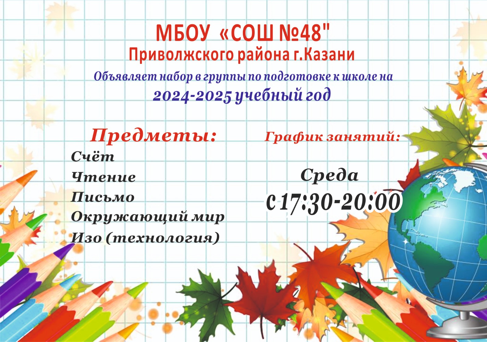 Информация для родителей будущих первоклассников МБОУ «СОШ №48» Приволжского района г. Казани
