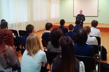 В рамках профориентационной работы 18 апреля состоялась встреча учащихся 8-11 классов со студентом 3 курса Тетюшского государственного колледжа гражданской защиты по специальности Пожарная безопасность бывшим нашим учеником Ганчуриным Владимиром Алексеевичем . Он рассказал учащимся 8-11 классов про свой колледж, про профессию пожарника.Ребята с интересом слушали и задавали вопросы.