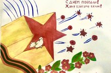08.05 - Открытка ветерану (изображение рисунка с письменным поздравлением ветеранам,закреплённым за школой)