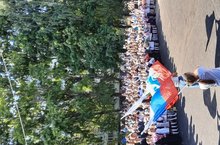 11 сентября в гимназии прошли очередные линейки, посвященные поднятию флагов и пением гимнов РФ и РТ. Затем ребята проследовали на Урок Разговор о важном, который был посвящен теме " Там, где Россия"..