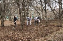 В гимназии проходит неделя по санитарной очистке территории. За каждым классом закреплён свой участок, который ребята вместе с педагогами очищают от листьев и мусора.