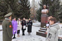 9 декабря в честь праздника Дня Героев отечества отряд Юнармии нашей гимназии вместе с советником по воспитанию Евсеевой М.Н., преподавателем ОБЗР Ильиным Е.М.принял участие в митинге у Памятника М.Х.Сыртлановой. По окончании митинга состоялось возложение цветов.