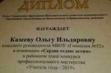 Поздравляем! Казееву Ольгу Ильдаровну, победителя в номинации «Сердце отдаю детям» районного этапа Всероссийского конкурса «Учитель года – 2019». Желаем ей дальнейших творческих успех и побед!