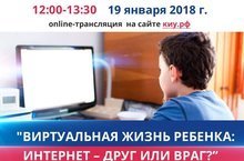 19 января с 12.00 до 13.30 состоится Республиканское родительское интернет-собрание «Виртуальная жизнь ребенка: интернет – друг или враг?». Он-лайн трансляция собрания будет вестись на сайте Казанского инновационного университета имени В.Г.Тимирясова по адресу: https://ieml.ru/.