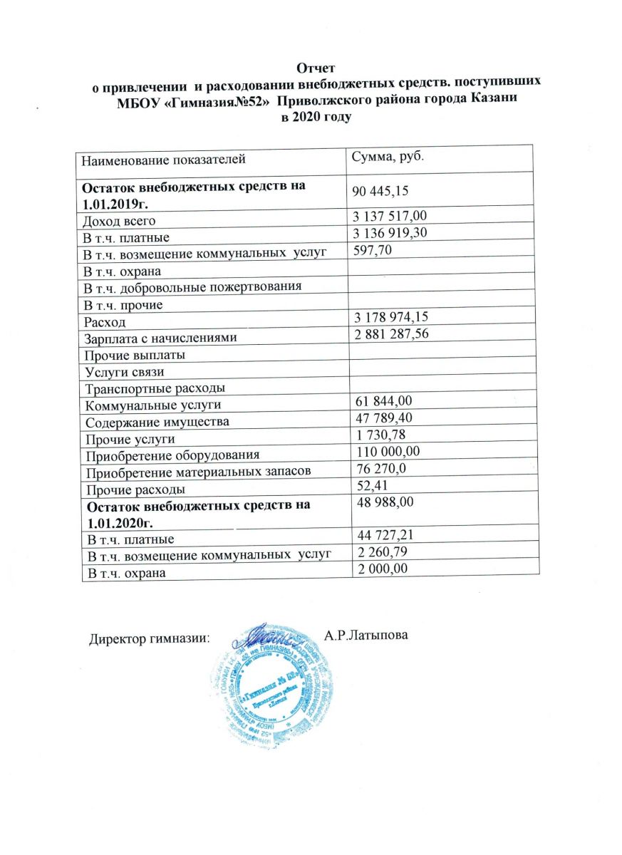 Отчет о привлечении и расходовании внебюджетных средств за 2020 год