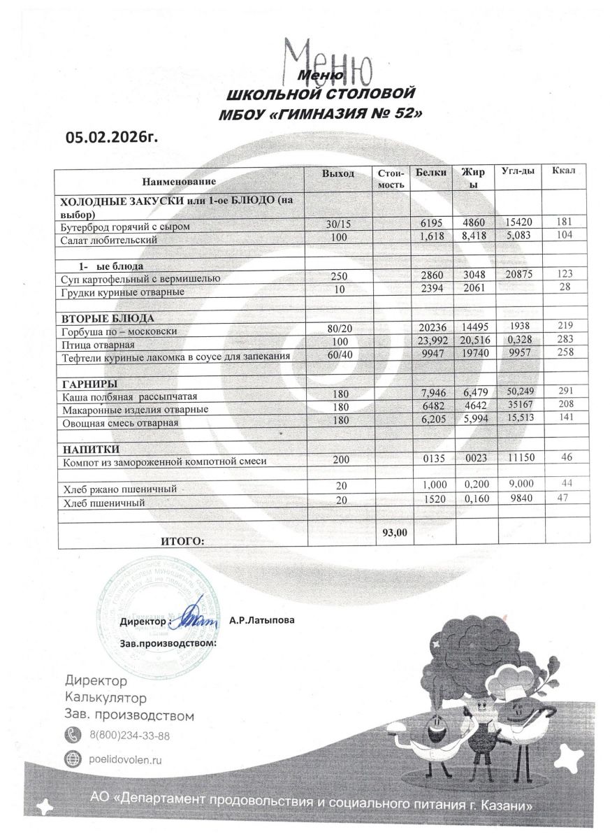 Меню ежедневного горячего питания для 5 - 11 классов