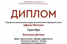Фасхиева Диляра стала обладателем Гран-при в городском вокальном конкурсе исполнителей народной песни. "Душа России" 09.03.2023