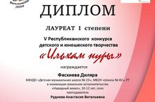 Учащаяся 4В класса Фасхиева Диляра стала Лауреатом 1 степени в V Республиканском конкурсе детского и юношеского творчества "Ильхам нуры". 12.04.2023