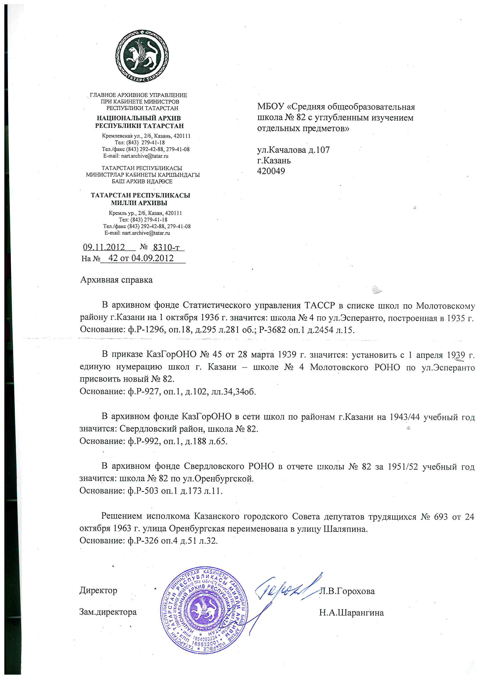О дате создания образовательной организации. Архивная справка