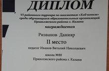 Поздравляем Ризванова Данияра занявшего 2 место в VI районном турнире по шахматам "Ход конем" среди обучающихся образовательных организаций Приволжского района г. Казани.