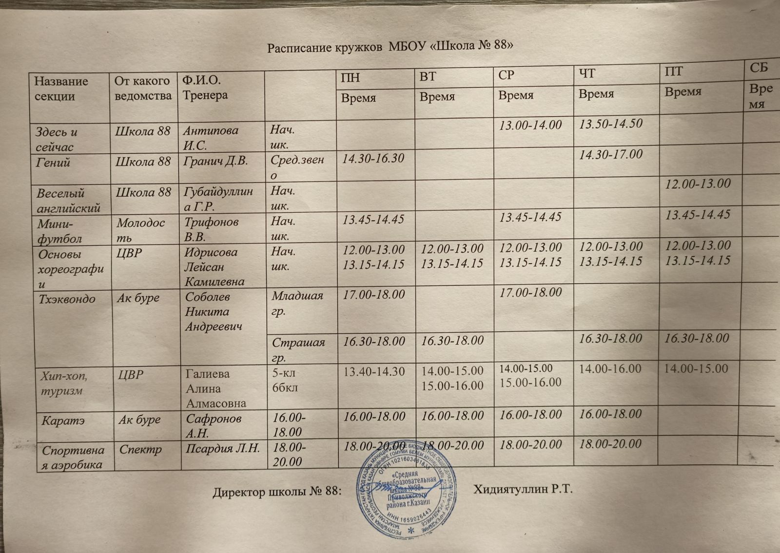 Расписание кружков