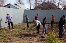 Вооружившись необходимым инвентарем, ребята и педагоги с удовольствием приводят в порядок школьную территорию: собирают мусор, сгребают листву и траву. -