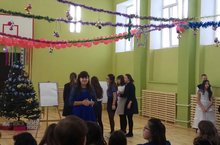 Ученики среднего звена провели новогоднее представление с песнями и танцами, постановкой спекталя и различных сцен.