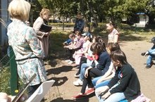 Сегодня лагерь посетили представители 16 филиала Центральной библиотеки Казани, они провели увлекательную беседу на свежем воздухе, рассказав о детских развлекательных и спортивных комплексах нашего города.
